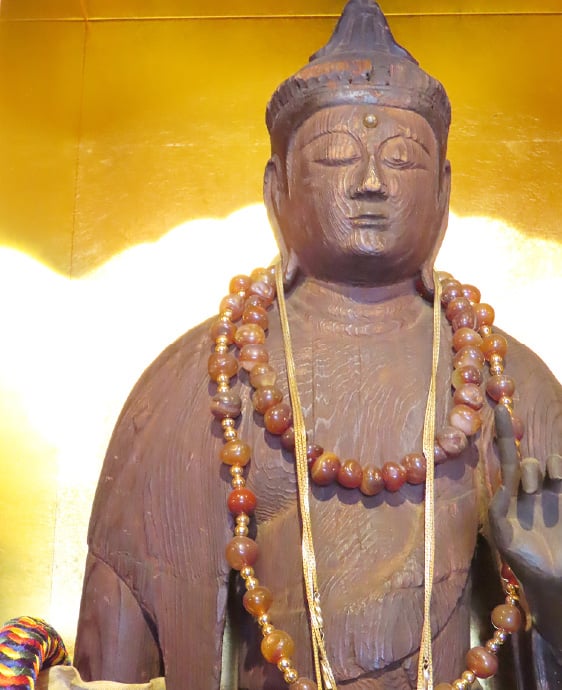 おだやかな容姿で、右手に「与願印」、左手は「蓮華のつぼみ」を持たれた印の姿が特徴です。